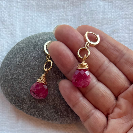 Organic Ruby Drop Earrings · Faceted Red Gemstone Gift